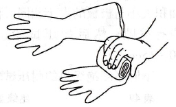 ①使用前須先檢查,將手套朝手指方向卷曲,檢查有無(wú)漏氣或裂口等,如圖78所示。如有漏氣或裂口,則不能使用。