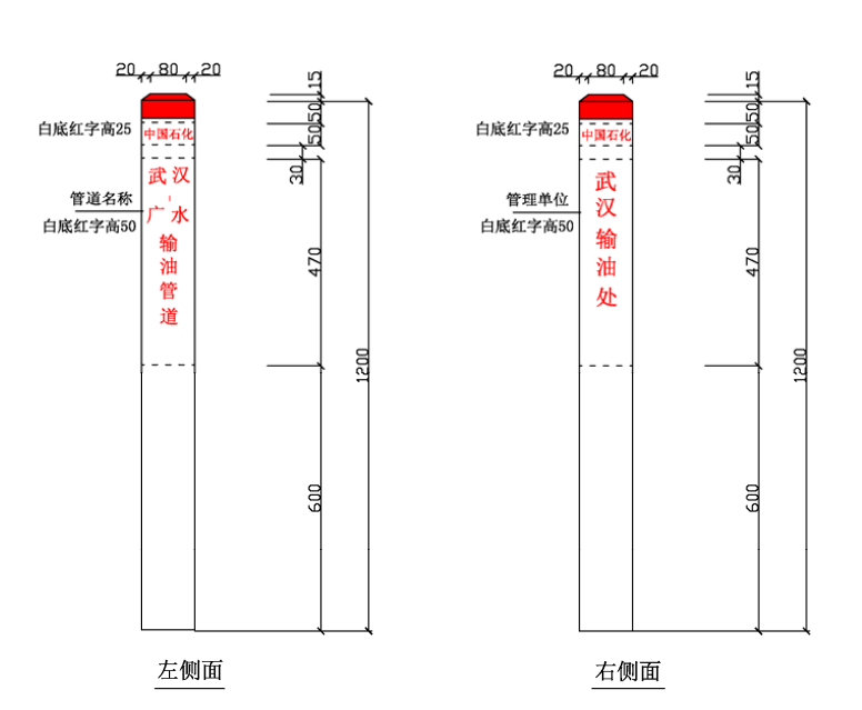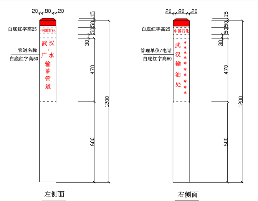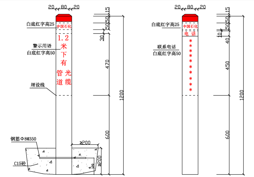 ⑴ 加密樁/通信標(biāo)識(shí)均標(biāo)注中國石化名稱、管道名稱、警示用語、管理單位和聯(lián)系電話。